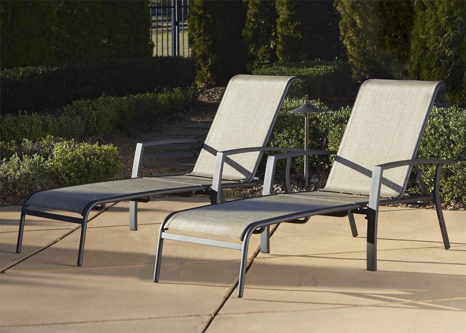 Set of 2 lounge chairs, 5 recline positions.